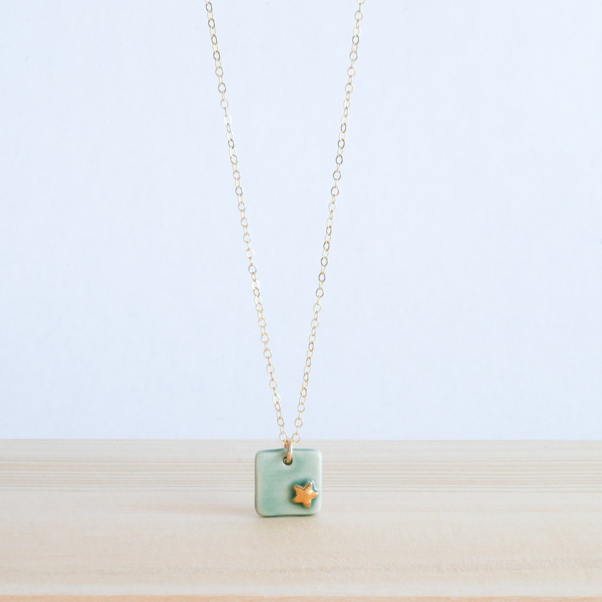 Handmade ceramic pendant with gold fill chain.