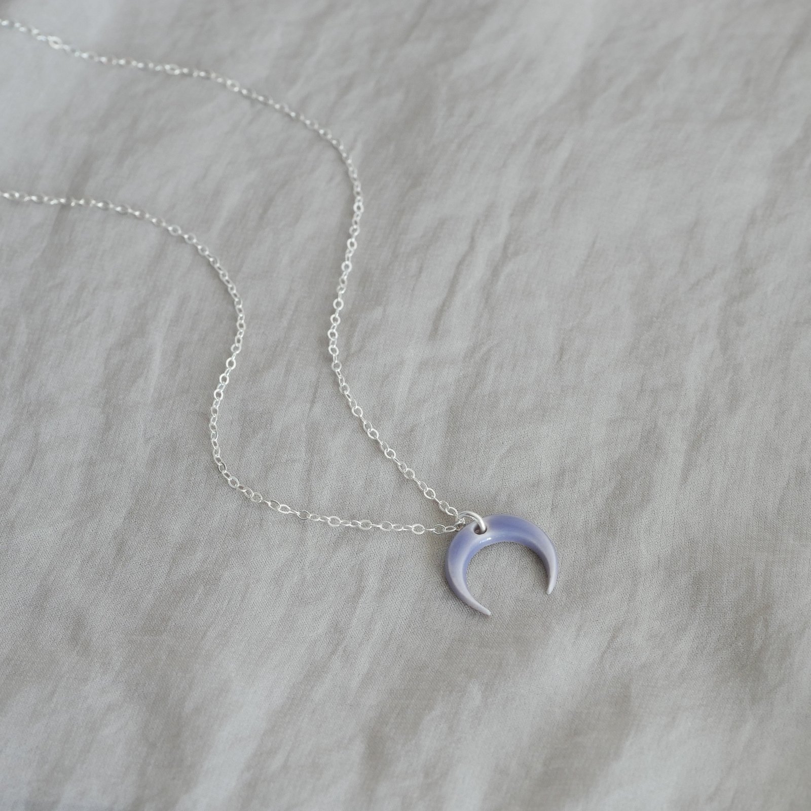 Crescent Moon Necklace Silver Chain (Multiple Colors)